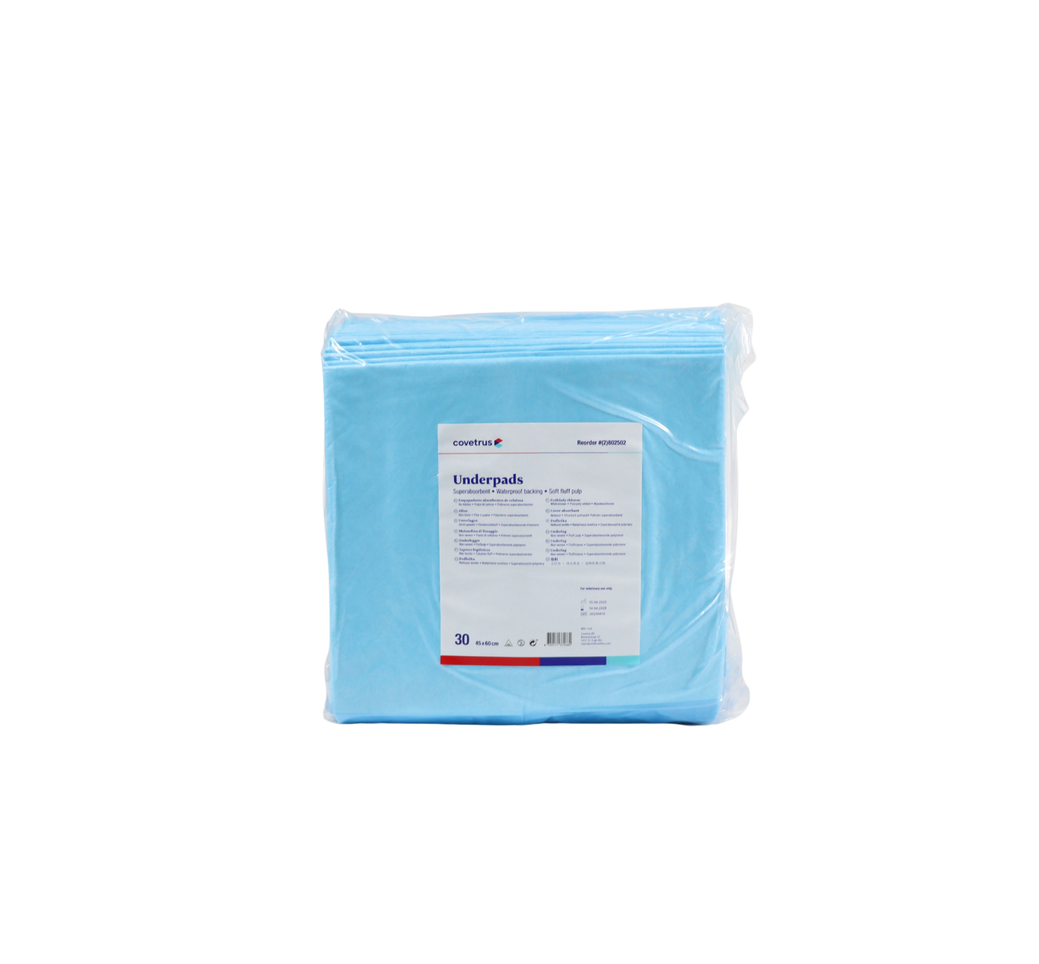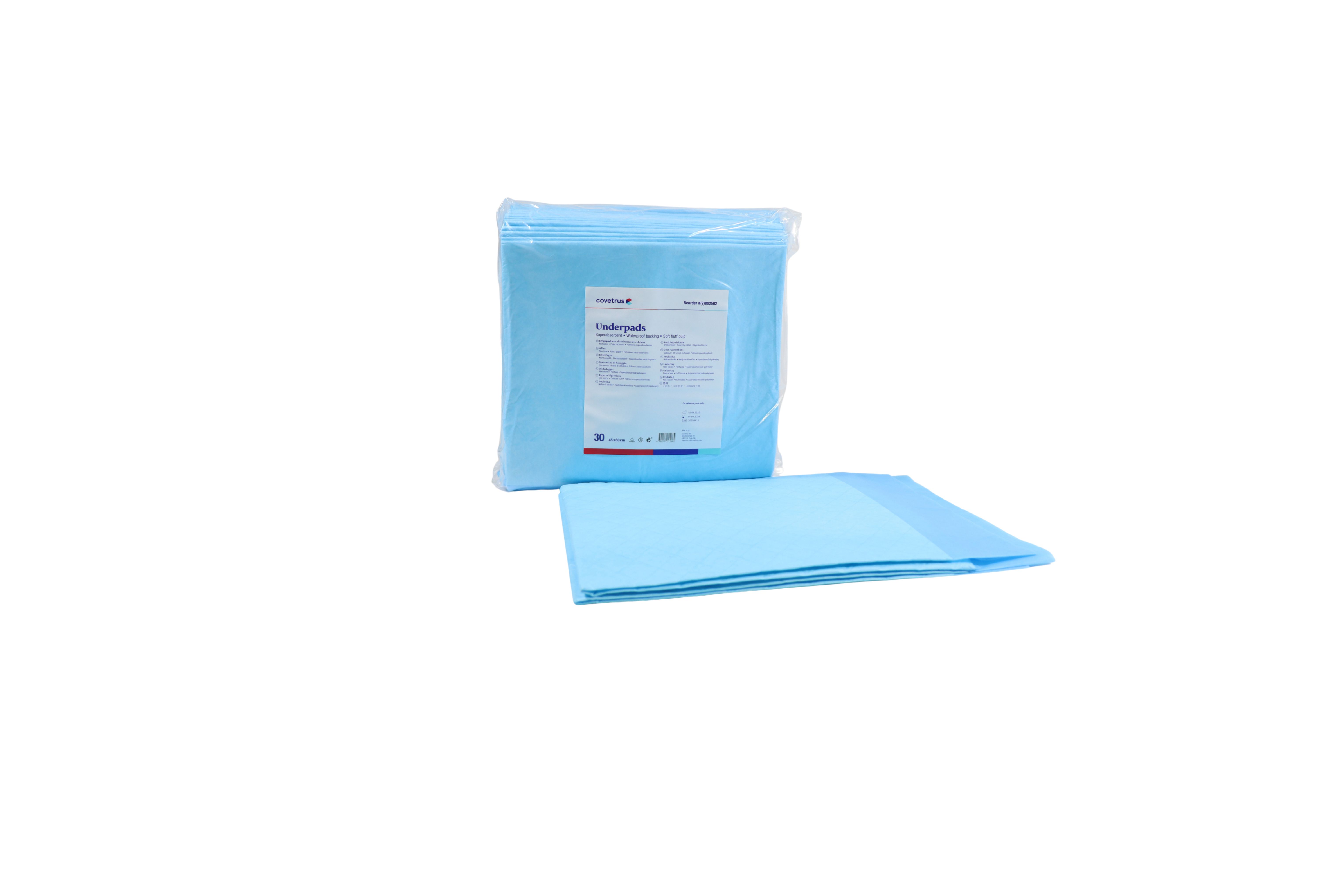 Underpads for Veterinary use. Waterproof backing, fast absorbable, non woven, fluff pulp, superabsorbent polymers. Absorbation capacity: 2000ml